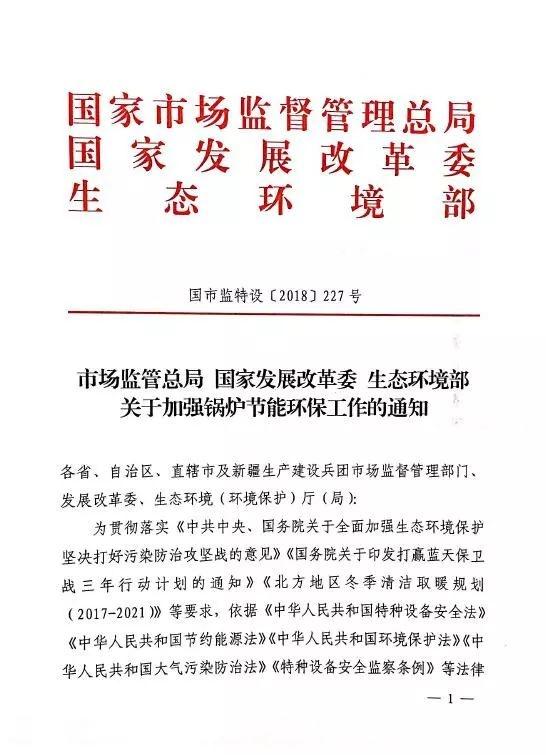 為貫徹落實《中共中央、國務院關于全面加強生態環境保護堅決打好污染防治攻堅戰的意見》《國務院關于印發打贏藍天保衛戰三年行動計劃的通知》《北方地區冬季清潔取暖規劃(2017-2021)》等要求,依據《中華人民共和國特種設備安全法》《中華人民共和國節約能源法》《中華人民共和國環境保護法》《中華人民共和國大氣污染防治法》《特種設備安全監察條例》等法律法規的規定,現就加強鍋爐節能環保工作有關事項通知如下。