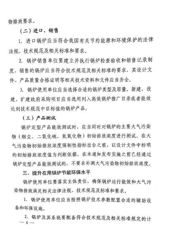 4. 各地有關部門要按照國務院相關文件的要求推進落后鍋爐淘汰工作。要堅持因地制宜,多措并舉,制定燃煤鍋爐綜合整治實施方案,分類提出整治要求,維持現有設備有效運行,不搞“一刀切”,宜電則電、宜氣則氣、宜煤則煤,宜熱則熱,鍋爐淘汰前應有替代熱源。