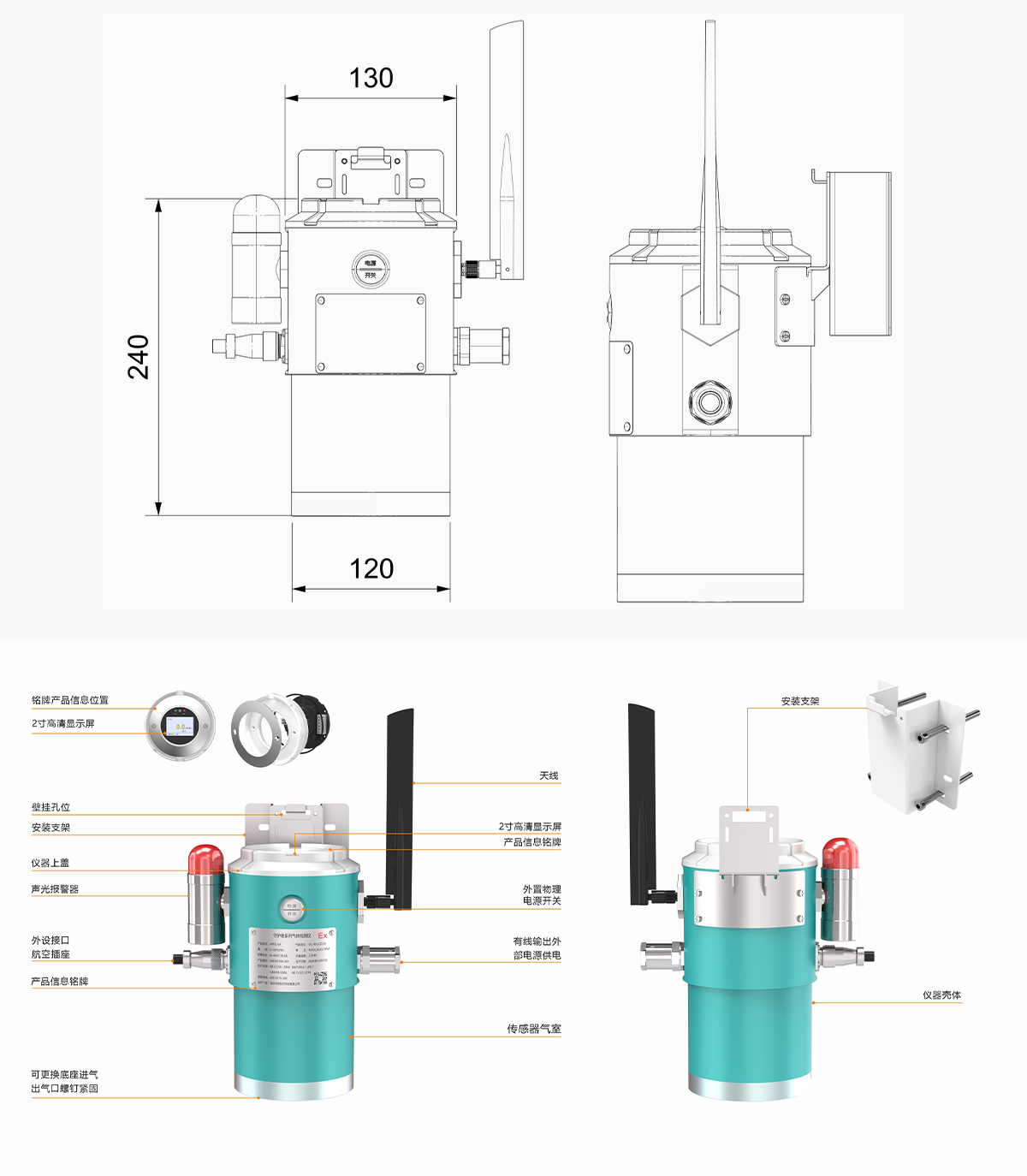 核心特點:最大支持10種類氣體成分同時檢測、可增加視頻錄制功能、可兼容非氣體類檢測因子、無需供電可自工作一年以上、支持泵吸和擴散兩種采樣方式、定位功能、物聯網產品