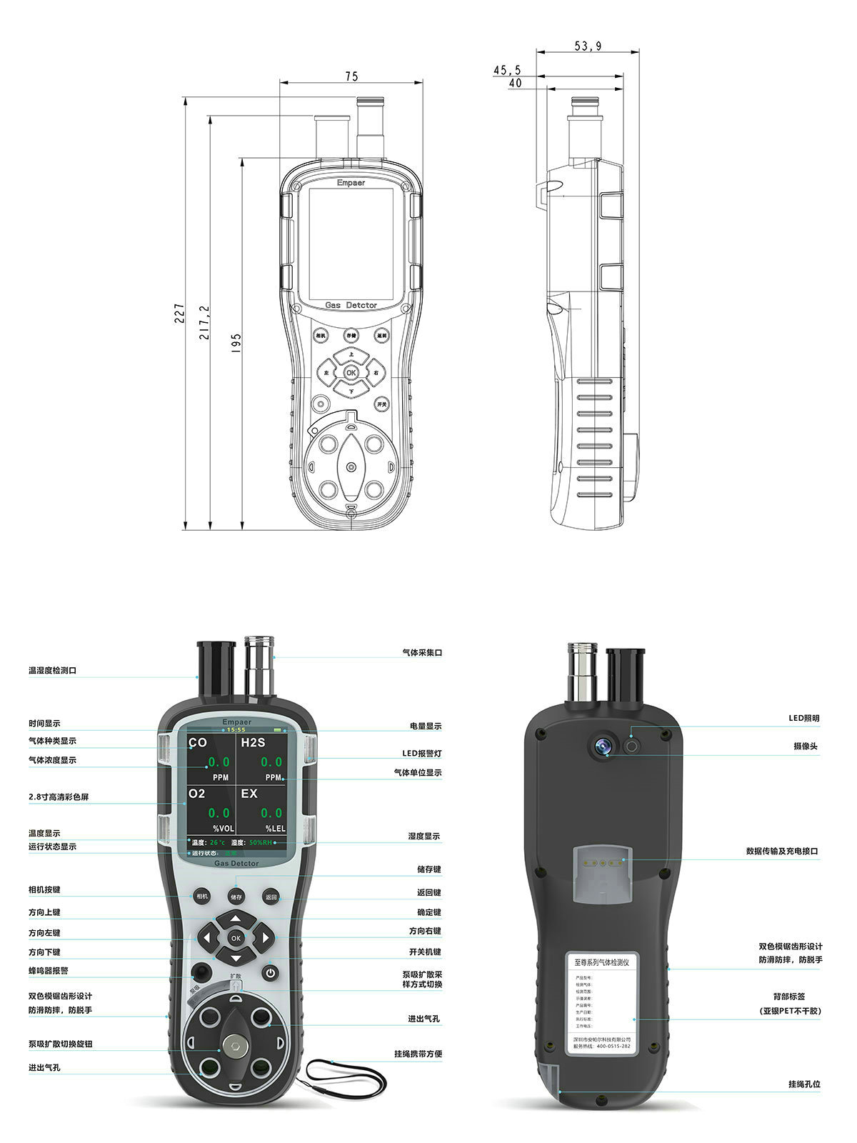 核心特點:高端、功能強大、可拍照攝像、可照明、泵吸和擴散采樣模式切換簡單、網絡版儀器設備、雙色模防滑防脫手設計;